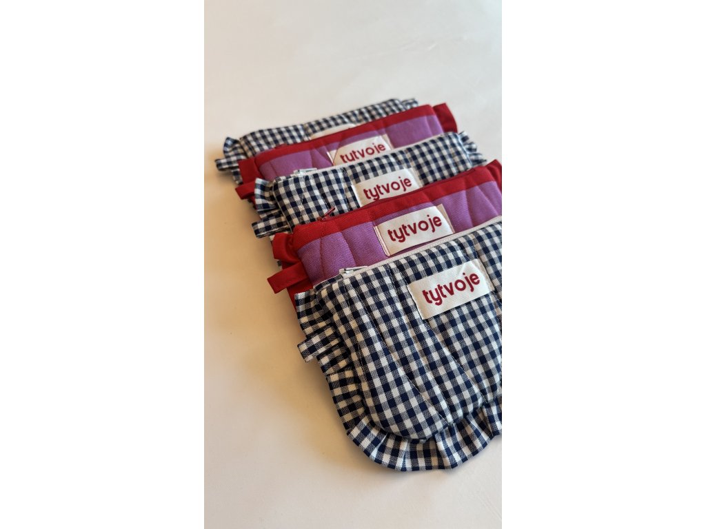 Každý kus je ručně šitý a díky rozložení látky při stříhání a prošívání vzniká pokaždé originál – žádné dvě taštičky nejsou stejné. Proto se Vaše taštička může mírně lišit od té na fotografii. Taštička má praktické poutko, na které lze připnout klíčenku z naší nabídky.