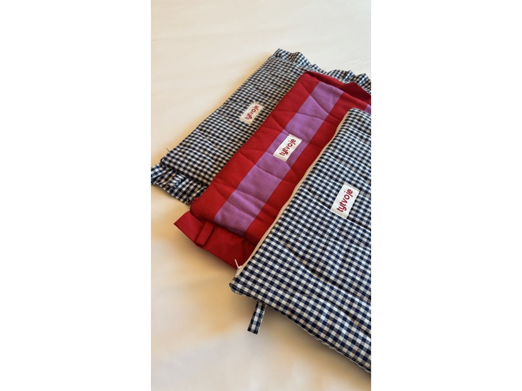 Naše největší varianta tašky nabízí dostatek prostoru a široké využití. Hodí se na menší cestovní fén, jemné spodní prádlo, kosmetiku na delší cesty nebo jako praktický organizér do domácnosti. Velikost L oceníte všude tam, kde chcete mít věci přehledně uložené a zároveň po ruce. Taštička je prošívaná, vnitřní materiál dodává měkkost a ochraňuje předměty uvnitř proti poškození.