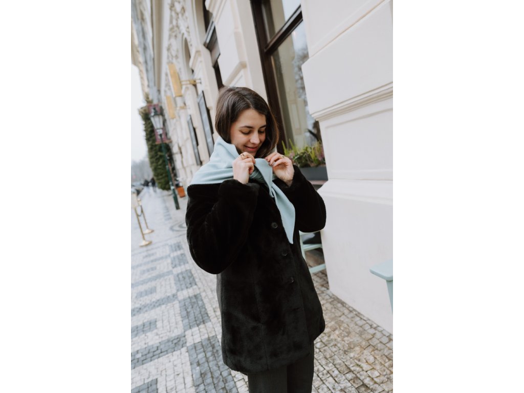 Trojuhelníkový tvar se snadno váže a dobře drží tvar. Zahřeje v zimě ke kabátu. Na jaře a podzim se slabou bundičkou.