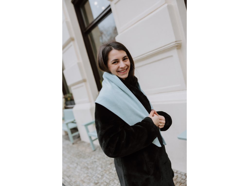 Tento šátek je z vlny z deadstocku – to znamená, že látka už existovala, byla kvalitní a já jsem ji nenechala zapadnout prachem. Místo toho z ní vznikl kousek, který zahřeje krk, outfit i svědomí. Win-win.