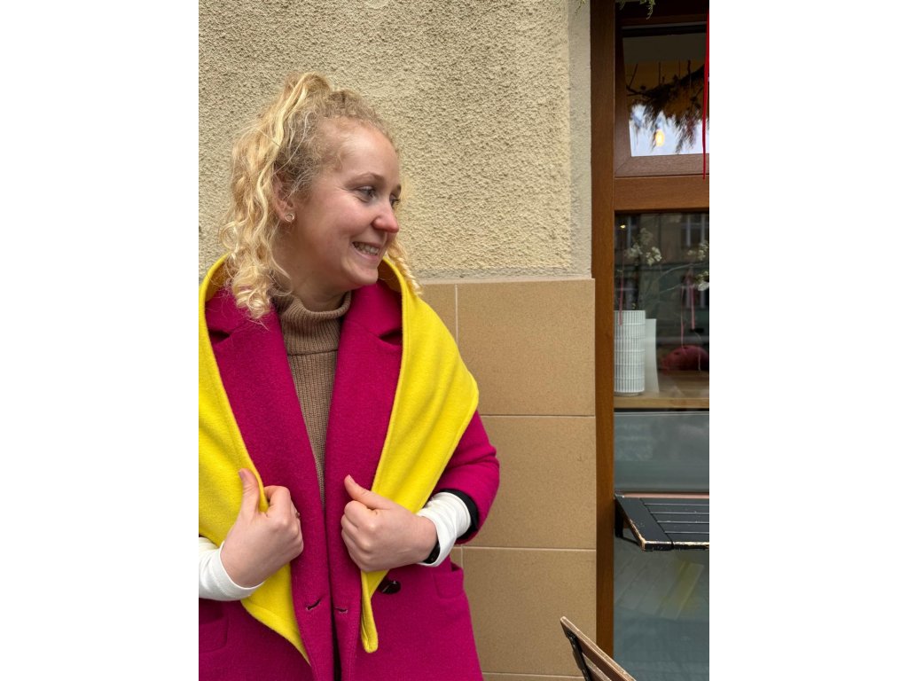 Tento šátek je z vlny z deadstocku – to znamená, že látka už existovala, byla kvalitní a já jsem ji nenechala zapadnout prachem. Místo toho z ní vznikl kousek, který zahřeje krk, outfit i svědomí. Win-win.